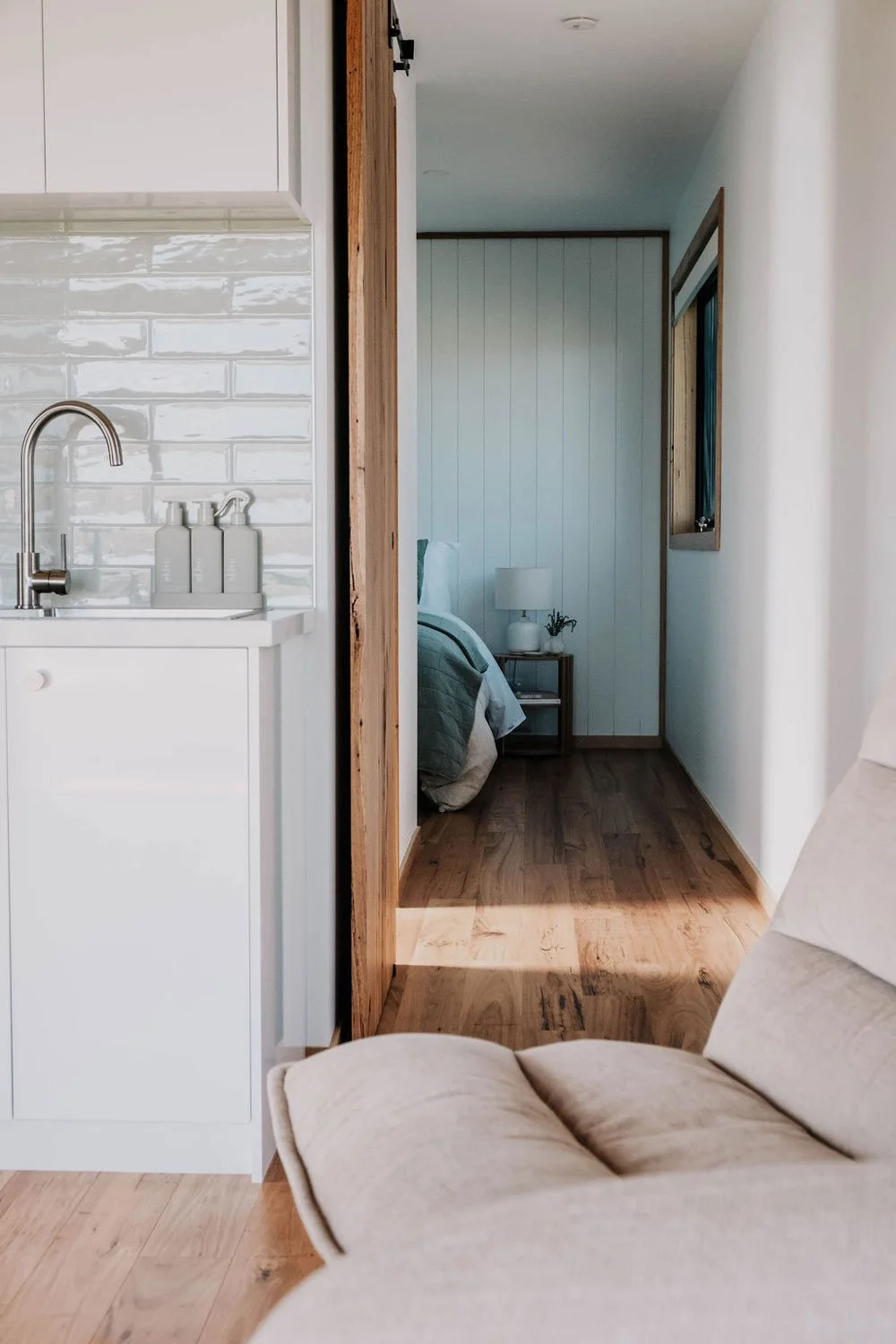 This boutique accommodation project at Port Fairy, saw MillBuilt deliver four thoughtfully designed, one-bedroom cabins onto three acres on the Moyne. Each north facing cabin is positioned to capture natural light and sweeping river views, creating a strong connection to the surrounding landscape. The cabins balance comfort, functionality and luxury, creating a calm and inviting retreat.